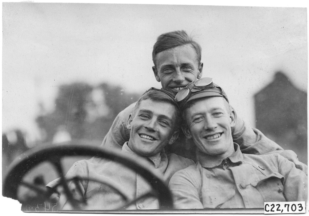 Favorite this☆ Glidden tourists smile for the camera, at 1909 Glidden Tour Description: View of three tourists smiling for the camera, at the 1909 Glidden Tour. Photo edges cut unevenly. Details Resource ID: EB01g725 Subject: Glidden Tour (1909) Automobile driving--Competitions--United States Automobile drivers Photographic prints Date Issued: 1909-07 Format: 1 photographic print ; 4.5 x 6.5 in. Member of: National Automotive History Collection Lazarnick Collection Filing Location: Tours--Glidden Tour, 1909 Negative Number: Negative #C22,703 Rights: Physical rights are retained by DPL. Copyright is retained in accordance with U.S. copyright laws.