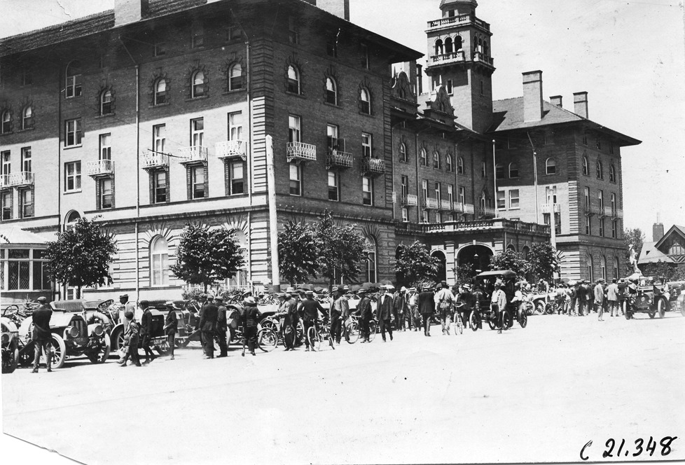 Glidden tourists at Antlers Hotel, Colorado Springs, Colorado, at the 1909 Glidden Tour