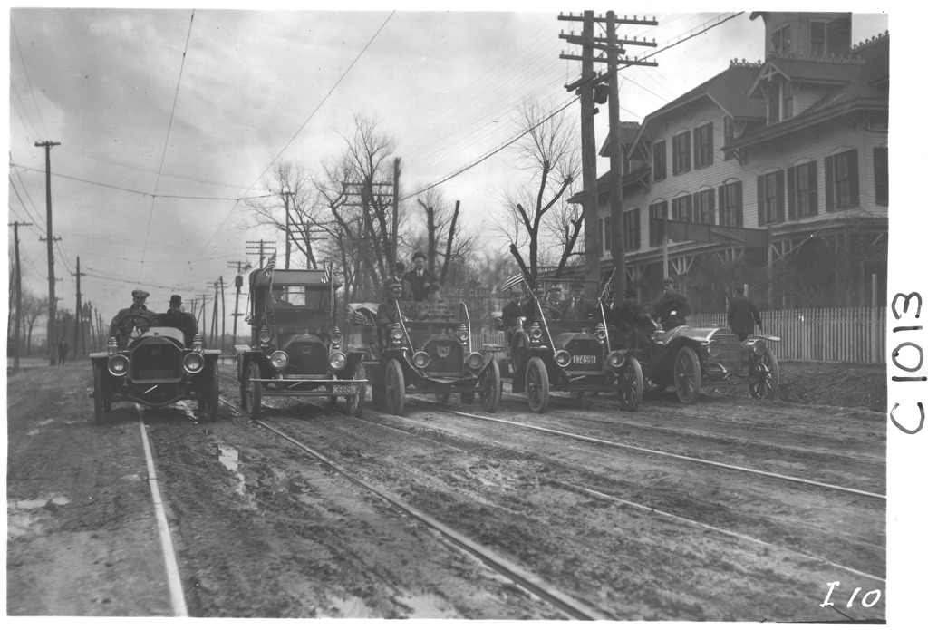 Favorite this☆ E-M-F car parked in line with other cars, on pathfinder tour for 1909 Glidden Tour Description: View of Dai Lewis and party in E-M-F car, parked in line with other cars, on pathfinding tour for the 1909 Glidden Tour. Details Resource ID: EB01g858 Creator: Krohn, William Subject: Glidden Tour (1909) Automobile driving--Competitions--United States Automobiles E-M-F Company Photographers--New York (State)--New York Photographic prints Date Issued: 1909-04 Format: 1 photographic print ; 5 x 7 in. Member of: National Automotive History Collection Lazarnick Collection Filing Location: Tours--Glidden Tour, 1909 Negative Number: Negative #C1013 Rights: Physical rights are retained by DPL. Copyright is retained in accordance with U.S. copyright laws.