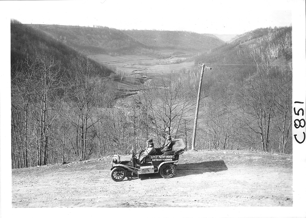 E-M-F car on mountain road, on pathfinder tour for 1909 Glidden Tour