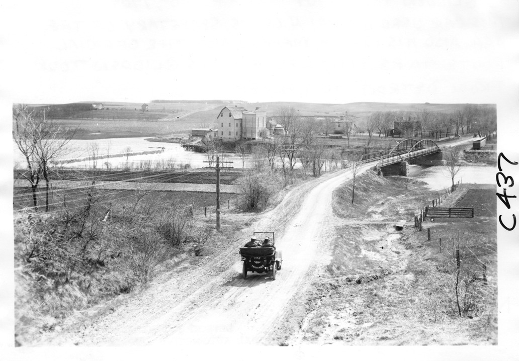 E-M-F car approaching town, on pathfinder tour for 1909 Glidden Tour Description: View of E.M.F. car on dirt road approaching a medium-sized bridge, buildings visible on far shore, on pathfinding tour for the 1909 Glidden tour. Details Resource ID: EB01g989 Creator: Krohn, William Subject: Glidden Tour (1909) Automobile driving--Competitions--United States Bridges Automobiles E-M-F Company Photographers--New York (State)--New York Photographic prints Date Issued: 1909-04 Format: 1 photographic print ; 5 x 7 in. Member of: National Automotive History Collection Lazarnick Collection Filing Location: Tours--Glidden Tour, 1909 Negative Number: Negative #C437 Rights: Physical rights are retained by DPL. Copyright is retained in accordance with U.S. copyright laws.