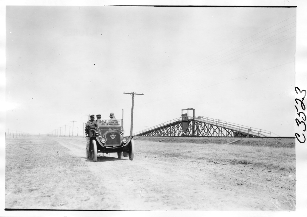 Favorite this☆ E-M-F car by trestled structure, on pathfinder tour for 1909 Glidden Tour Description: View of E-M-F car on dirt road, a wooden, trestled walkway next to a railroad track is in the background, on pathfinding tour for the 1909 Glidden tour. Details Resource ID: EB01g993 Subject: Glidden Tour (1909) Automobile driving--Competitions--United States Automobiles E-M-F Company Photographic prints Date Issued: 1909-04 Format: 1 photographic print ; 5 x 7 in. Member of: National Automotive History Collection Lazarnick Collection Filing Location: Tours--Glidden Tour, 1909 Negative Number: Negative #C3523 Rights: Physical rights are retained by DPL. Copyright is retained in accordance with U.S. copyright laws.