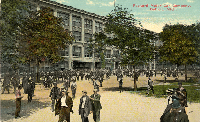 Favorite this☆ Packard Motor Car Company, Detroit, Michigan Description: View of the Packard Motor Car Company factory with many employees outside. Details Resource ID: EB02a064 Subject: Automobile factories--Michigan--Detroit Packard automobile Packard Motor Car Company Postcards Date Issued: 1913 Format: 1 postcard : col. ; 3.5 x 5.5 in. Member of: Burton Historical Collection Rights: Physical rights are retained by DPL. Copyright is retained in accordance with U.S. copyright laws.