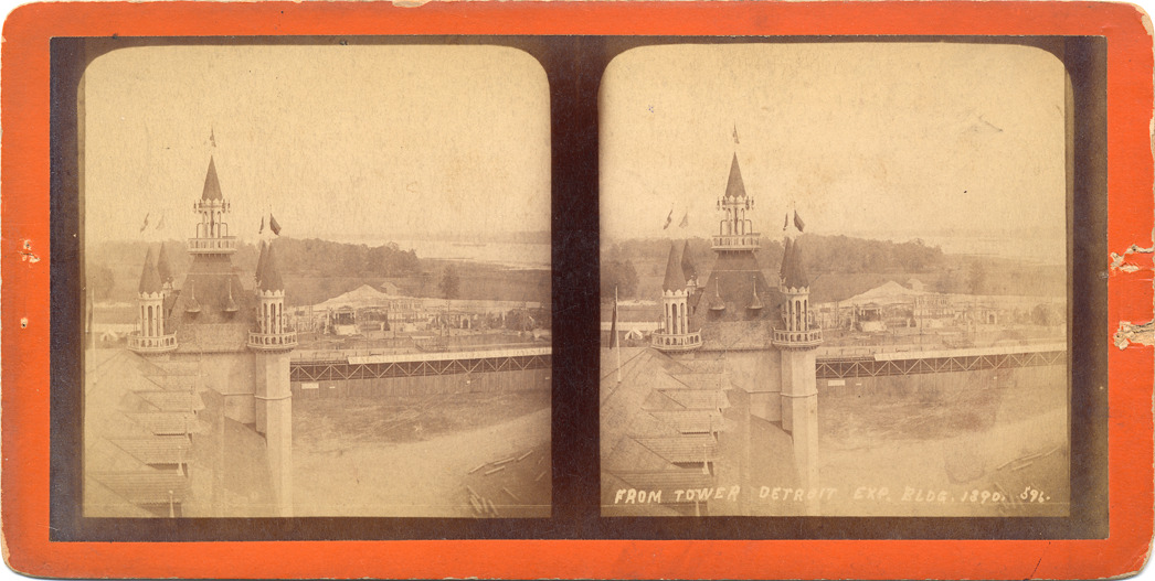 Favorite this☆ Detroit International Fair and Exposition Description: Orange mount. Dome topped. View of tower with flags. Handwritten on front of stereocard: "From tower Detroit Exp. bldg., 1890, 596." Details Resource ID: EB02c080 Subject: Exhibitions--Michigan--Detroit Towers--Michigan--Detroit Stereographs Date Issued: 1890 Format: 1 photoprint on stereocard ; 3.5 x 7 in. Member of: Burton Historical Collection Filing Location: D/Exhibitions-Detroit International Fair & Exposition Rights: Physical rights are retained by DPL. Copyright is retained in accordance with U.S. copyright laws.