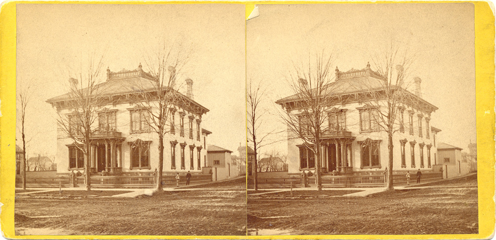 Favorite this☆ Home of Samuel J. Caskey Description: Gold mount. View of large home with leafless trees in front. Handwritten on stereocard back: "Built by S.G. Caskey, N.W. corner Fort & Brooklyn, occupied 1865-1885." Details Resource ID: EB02c098 Subject: Historic buildings--Michigan--Detroit Stereographs Date Issued: Unknown year Format: 1 photoprint on stereocard ; 3.25 x 7 in. Member of: Burton Historical Collection Filing Location: D/Historic houses-Caskey, Samuel G. Rights: Physical rights are retained by DPL. Copyright is retained in accordance with U.S. copyright laws.