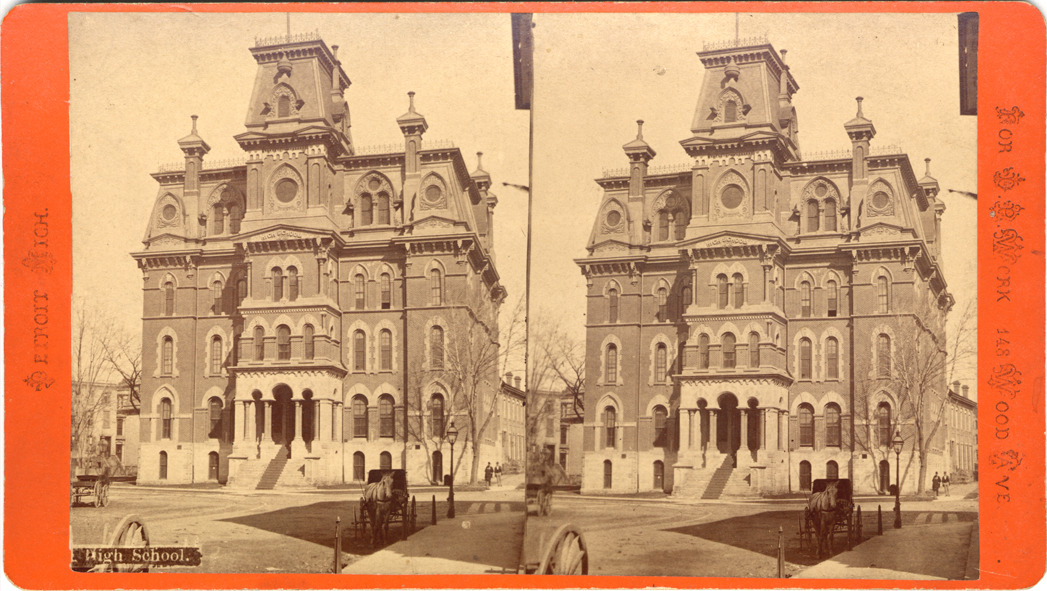 Favorite this☆ Detroit High School Description: Orange mount. View of the front of Detroit High School, a Gothic style building. Printed on front of stereocard: "High school, Detroit, Mich., for D.P Work, 148 Wood Ave." Details Resource ID: EB02c152 Creator: Work, D.P. Subject: High school buildings--Michigan--Detroit Photographers--Michigan--Detroit Stereographs Date Issued: Unknown year Format: 1 photoprint on stereocard ; 4 x 7 in. Member of: Burton Historical Collection Filing Location: D/Schools-High Rights: Physical rights are retained by DPL. Copyright is retained in accordance with U.S. copyright laws.