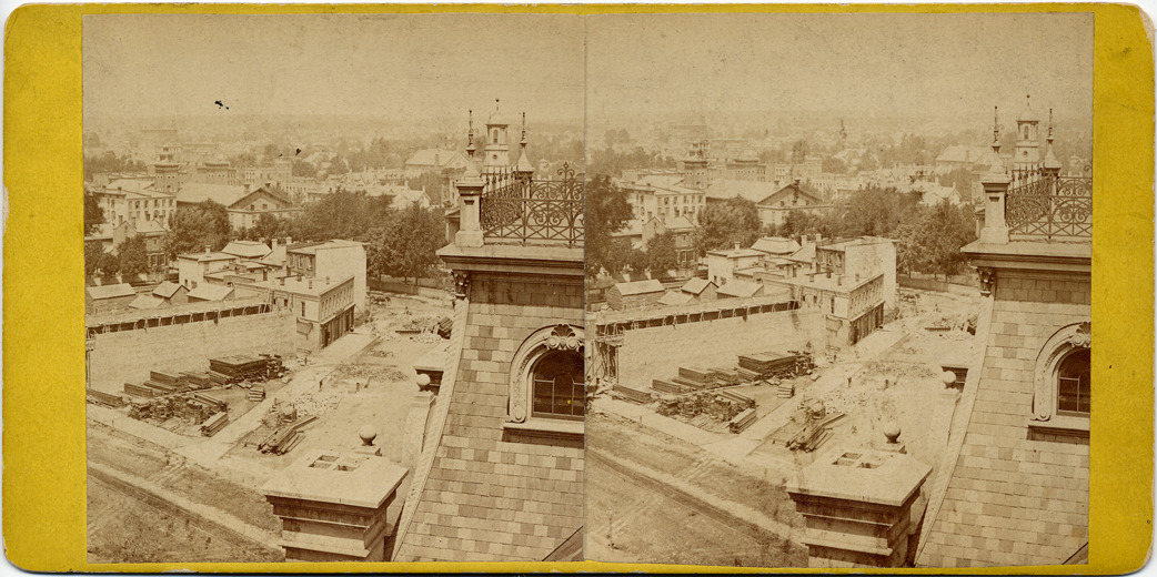 Favorite this☆ Bird's-eye view of Michigan Avenue Description: Goldenrod mount. Bird's-eye view of businesses and a construction site on Michigan Avenue. Handwritten on stereocard back: "Taken from City Hall looking n.w., car track on Michigan Ave., 1870." Details Resource ID: EB02c179 Subject: Streets--Michigan--Detroit Building sites--Michigan--Detroit Commercial buildings--Michigan--Detroit Stereographs Date Issued: 1870 Format: 1 photoprint on stereocard ; 3.5 x 7 in. Member of: Burton Historical Collection Filing Location: D/Streets-Michigan Rights: Physical rights are retained by DPL. Copyright is retained in accordance with U.S. copyright laws.