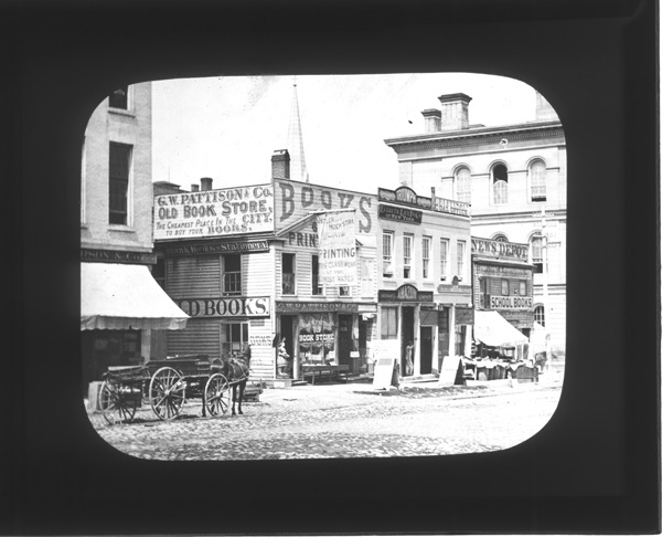 Favorite this☆ Pattison & Co. book store on Griswold Description: Front view of the Pattison & Co. bookstore and other businesses on Griswold, cigar store Indian just outside store entrance. Recorded in lantern slide ledger: "D/Streets-Griswold at Larned." Details Resource ID: EB02c222 Creator: Bardwell, Jex, 1824-1902 Subject: Bookstores--Michigan--Detroit Commercial buildings--Michigan--Detroit Streets--Michigan--Detroit Photographers--Michigan--Detroit Lantern slides Date Issued: Unknown year Format: 1 transparency : glass ; 3.25 x 4 in. Member of: Burton Historical Collection Negative Number: BHC lantern slide no. 19 Rights: Physical rights are retained by DPL. Copyright is retained in accordance with U.S. copyright laws.