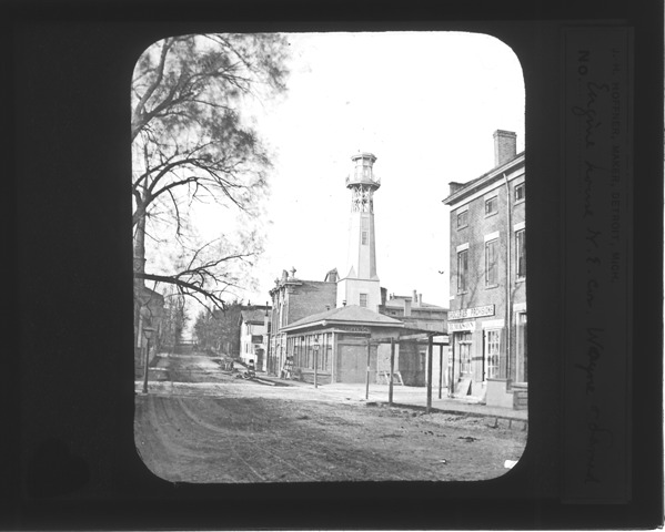 Favorite this☆ Detroit Fire Department building Description: View of a Detroit Fire Department building at the northeast corner of Wayne and Larned, with watchtower. Recorded in lantern slide ledger: "D/Buildings-Fire Department Building, NE corner Wayne & Larned." Details Resource ID: EB02c225 Subject: Fire departments--Michigan--Detroit Watchtowers--Michigan--Detroit Lantern slides Date Issued: Unknown year Format: 1 transparency : glass ; 3.25 x 4 in. Member of: Burton Historical Collection Negative Number: BHC lantern slide no. 22 Rights: Physical rights are retained by DPL. Copyright is retained in accordance with U.S. copyright laws.