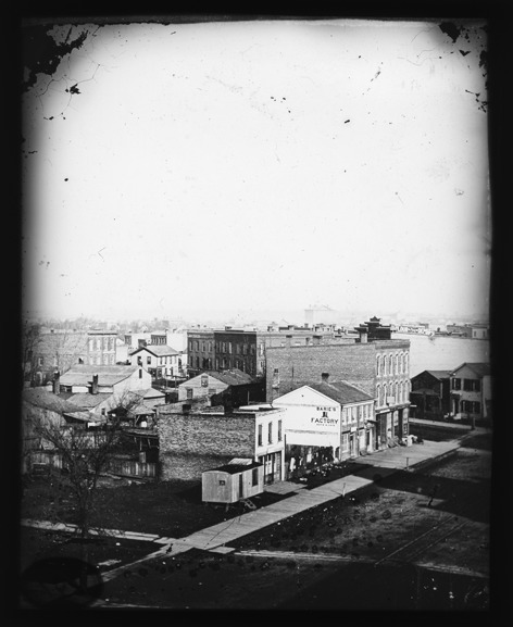 Favorite this☆ Bird's-eye view of Barie's hat factory Description: Bird's-eye view of Barie's hat factory and other businesses, with the Detroit River in the background. Recorded in lantern slide ledger: "D/Industries & business houses-Barie's Hat Factory." Details Resource ID: EB02c351 Subject: Hat trade--Michigan--Detroit Factories--Michigan--Detroit Detroit River (Mich. and Ont.) Lantern slides Date Issued: Unknown year Format: 1 transparency : glass ; 3.75 x 3.25 in. Member of: Burton Historical Collection Negative Number: BHC lantern slide no. 157; BHC glass neg. no. 1061 Rights: Physical rights are retained by DPL. Copyright is retained in accordance with U.S. copyright laws.