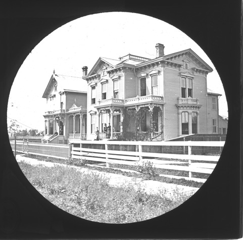 Favorite this☆ John Elbert residence Description: View of the residence of John Elbert, with family sitting on porch, another house stands directly next door. Lantern slide mount has a round opening. Recorded in lantern slide ledger: "B/Elbert, John N., residence." Details Resource ID: EB02c400 Subject: Dwellings--Michigan--Detroit Lantern slides Date Issued: Unknown year Format: 1 transparency : glass ; 3.25 x 3.25 in. Member of: Burton Historical Collection Negative Number: BHC lantern slide no. 228 Rights: Physical rights are retained by DPL. Copyright is retained in accordance with U.S. copyright laws.