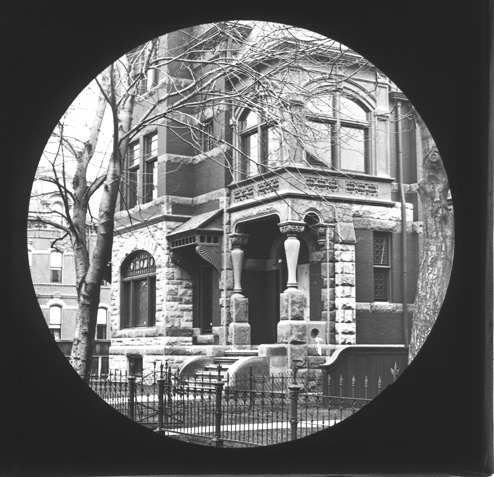 Favorite this☆ Brick house on Jefferson Avenue Description: View of an unidentified three-story brick house, showing the porch in detail, wrought iron fence is in foreground. The lantern slide mount has a round opening. Recorded in lantern slide ledger: "D/Historic Houses-Jefferson Ave." Details Resource ID: EB02c422 Subject: Brick houses--Michigan--Detroit Porches--Michigan--Detroit Lantern slides Date Issued: Unknown year Format: 1 transparency : glass ; 3.25 x 3.25 in. Member of: Burton Historical Collection Negative Number: BHC lantern slide no. 242 Rights: Physical rights are retained by DPL. Copyright is retained in accordance with U.S. copyright laws.