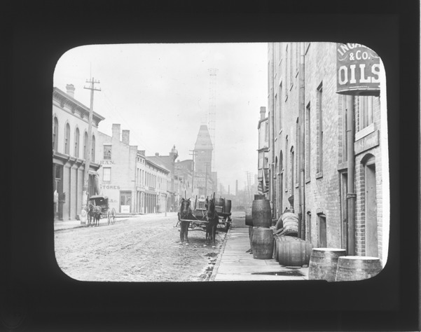 Favorite this☆ Horse-drawn vehicle and barrels next to Ingalls & Company Description: Horse drawn vechicle and barrels next to Ingalls & Company located at 46 Jefferson Ave. Recorded in lantern slide ledger: "D/Streets-Griswold, barrels of oil." Details Resource ID: EB02c513 Subject: Barrels--Michigan--Detroit Horse-drawn vehicles--Michigan--Detroit Lantern slides Date Issued: Unknown year Format: 1 transparency : glass ; 3 x 4 in. Member of: Burton Historical Collection Negative Number: BHC lantern slide no. 686 Rights: Physical rights are retained by DPL. Copyright is retained in accordance with U.S. copyright laws.