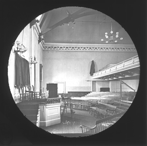 Favorite this☆ Unidentified church interior Description: Interior view of unidentified church. The lantern slide mount has a round opening. Recorded in lantern slide ledger: "D/Churches, benches for church pews." Details Resource ID: EB02c566 Subject: Church buildings--Michigan--Detroit Lantern slides Date Issued: Unknown year Format: 1 transparency : glass ; 3.25 x 3.25 in. Member of: Burton Historical Collection Negative Number: BHC lantern slide no. 442 Rights: Physical rights are retained by DPL. Copyright is retained in accordance with U.S. copyright laws.