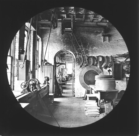 Favorite this☆ Unidentified industrial interior Description: Interior view of shop producing commercial millwork. The lantern slide mount has a round opening. Recorded in lantern slide ledger: "D/Industries & business houses-Interior of a machine shop, Pullman?." Details Resource ID: EB02c570 Subject: Mills and mill-work--Michigan--Detroit Commercial buildings--Michigan--Detroit Lantern slides Date Issued: Unknown year Format: 1 transparency : glass ; 3.25 x 3.25 in. Member of: Burton Historical Collection Negative Number: BHC lantern slide no. 446 Rights: Physical rights are retained by DPL. Copyright is retained in accordance with U.S. copyright laws.