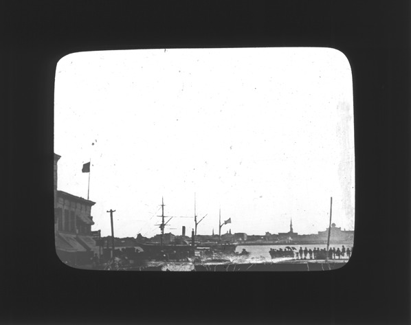 Favorite this☆ People wait at dock for the Windsor Ferry Description: Group of people stand on the dock waiting for the Windsor Ferry which approaches from the left, Detroit River in background. Lantern slide ledger reads, "D/River-Docks, Windsor Ferry dock, gift of Union Trust Co, c.1887." Details Resource ID: EB02c690 Subject: Docks--Michigan--Detroit Ferries--Michigan--Detroit Detroit River (Mich. and Ont.) Lantern slides Date Issued: 1887 Format: 1 transparency : glass ; 3.25 x 4 in. Member of: Burton Historical Collection Negative Number: BHC lantern slide no. 587 Rights: Physical rights are retained by DPL. Copyright is retained in accordance with U.S. copyright laws.