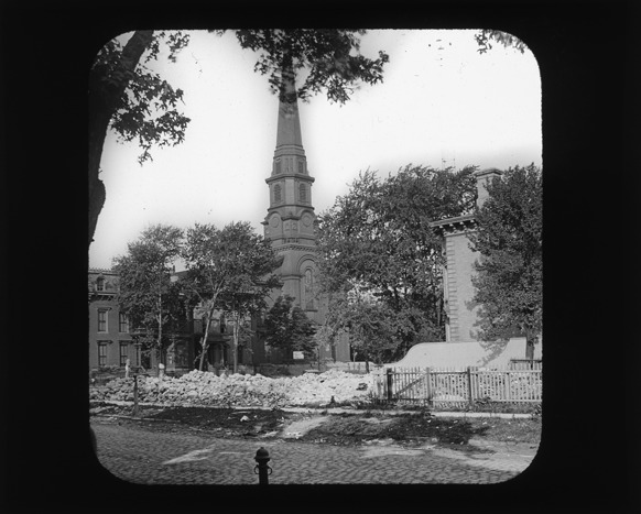 Favorite this☆ View of Fort Street at Wayne Description: Rubble is piled in front of church on Fort Street at Wayne, cobblestone street runs across foreground, trees in background. Recorded in lantern slide ledger: "D/Streets-Fort at Wayne." Details Resource ID: EB02c759 Subject: Streets--Michigan--Detroit Cobblestone roads--Michigan--Detroit Rubble--Michigan--Detroit Lantern slides Date Issued: Unknown year Format: 1 transparency : glass ; 3.25 x 4 in. Member of: Burton Historical Collection Negative Number: BHC lantern slide no. 687 Rights: Physical rights are retained by DPL. Copyright is retained in accordance with U.S. copyright laws.
