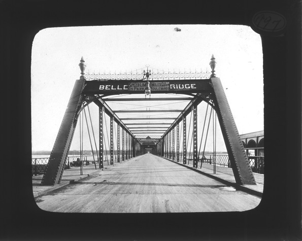 Favorite this☆ Bridge to Belle Isle Park Description: View down the bridge to Belle Isle Park in Detroit, Michigan. The sides and top of the bridge are riveted iron beams. Recorded in lantern slide ledger: "D/Bridges-Belle Isle (old)." Details Resource ID: EB02c876 Subject: Bridges--Michigan--Detroit Belle Isle Park (Detroit, Mich.) Lantern slides Date Issued: Unknown year Format: 1 transparency : glass ; 3.25 x 4 in. Member of: Burton Historical Collection Negative Number: BHC lantern slide no. 997 Rights: Physical rights are retained by DPL. Copyright is retained in accordance with U.S. copyright laws.