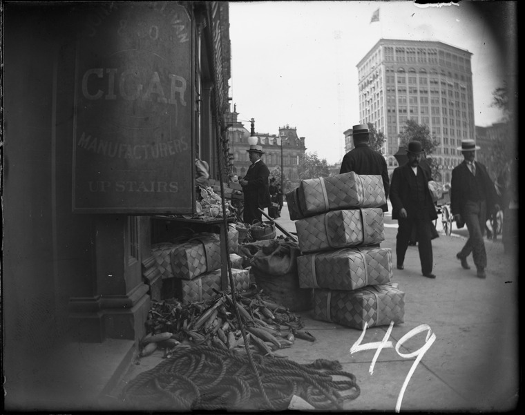 Favorite this☆ John C. Sullivan & Co. at Cadillac Square Description: Baskets are piled up near the front of John C. Sullivan & Co. Cigar Manufacters at Cadillac Square, men walk on sidewalk in front of building, with other businesses in background. Recorded in glass negative ledger: "D/Streets-Cadillac Square." Details Resource ID: EB02c973 Subject: Cigar industry--Michigan--Detroit Business establishments--Michigan--Detroit Glass negatives Date Issued: Unknown year Format: 1 negative : glass ; 4 x 5 in. Member of: Burton Historical Collection Negative Number: BHC glass neg. no. 49 Rights: Physical rights are retained by DPL. Copyright is retained in accordance with U.S. copyright laws.