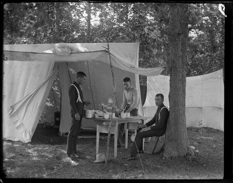 Favorite this☆ Men camping on Snake Island Description: Three men at a table set up outside two tents, with trees in background at Snake Island, Michigan. Recorded in glass negative ledger: "D/River-Islands-Snake." Details Resource ID: EB02d156 Subject: Campers (Persons)--Michigan--Detroit Tents--Michigan--Detroit Islands--Michigan--Detroit Glass negatives Date Issued: Unknown year Format: 1 negative : glass ; 4 x 5 in. Member of: Burton Historical Collection Negative Number: BHC glass neg. no. 466 Rights: Physical rights are retained by DPL. Copyright is retained in accordance with U.S. copyright laws.