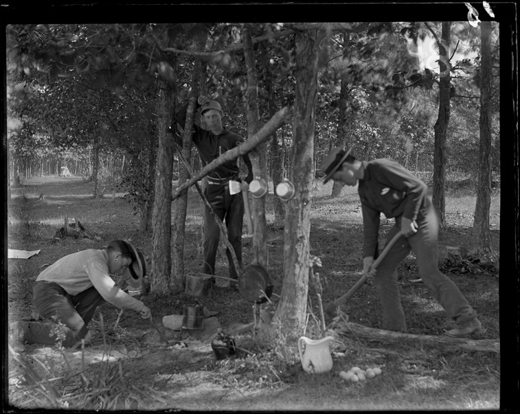 Favorite this☆ Boys prepare cooking fire on Snake Island Description: Boys prepare a cooking fire in the woods at Snake Island, with cooking pots and utensils hanging from tree branch. Recorded in glass negative ledger: "D/River-Islands-Snake." Details Resource ID: EB02d172 Subject: Boys--Michigan--Detroit Campfires Outdoor cooking--Michigan--Detroit Forests and forestry--Michigan--Detroit Islands--Michigan--Detroit Glass negatives Date Issued: Unknown year Format: 1 negative : glass ; 4 x 5 in. Member of: Burton Historical Collection Negative Number: BHC glass neg. no. 486 Rights: Physical rights are retained by DPL. Copyright is retained in accordance with U.S. copyright laws.