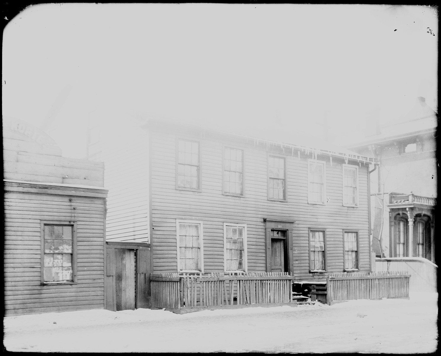 Favorite this☆ Houses on St. Antoine Description: Two story wood frame building on St. Antoine, with wooden fence in the snow. Recorded in glass negative ledger: "D/Streets-St. Antoine." Top of image is fogged. Details Resource ID: EB02d287 Subject: Dwellings--Michigan--Detroit Streets--Michigan--Detroit Wooden fences--Michigan--Detroit Glass negatives Date Issued: Unknown year Format: 1 negative : glass ; 8 x 10 in. Member of: Burton Historical Collection Negative Number: BHC glass neg. no. 618 Rights: Physical rights are retained by DPL. Copyright is retained in accordance with U.S. copyright laws.
