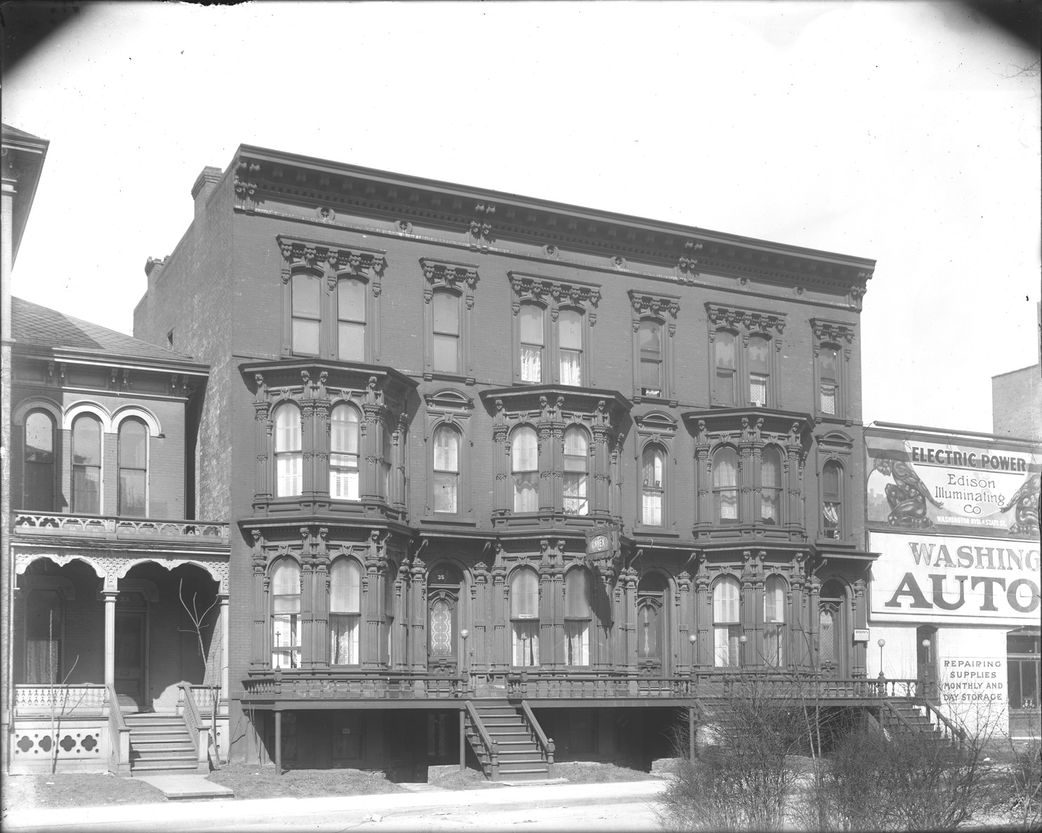 Favorite this☆ Annex building on Washington Boulevard Description: View of the Annex building, a three story ornate stone building on Washington Blvd., with signs for rooms in the window of #39. Recorded in glass negative ledger: "D/Streets-Washington, Washington Blvd., #35, 'The Annex.'" Details Resource ID: EB02d337 Subject: Apartment houses--Michigan--Detroit Glass negatives Date Issued: Unknown year Format: 1 negative : glass ; 8 x 10 in. Member of: Burton Historical Collection Negative Number: BHC glass neg. no. 671 Rights: Physical rights are retained by DPL. Copyright is retained in accordance with U.S. copyright laws.