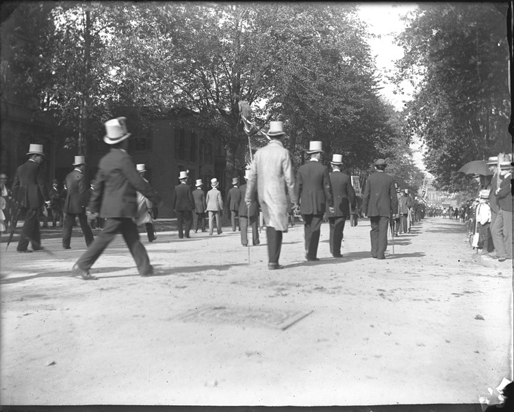 Favorite this☆ Maccabees in parade Description: Maccabees in long suitcoats and top hats, carrying canes, walk away from camera in parade. Recorded in glass negative ledger: "LD/Organizations-Maccabees." Details Resource ID: EB02d347 Subject: Maccabees (Organization) Fraternal organizations--Michigan--Detroit Parades--Michigan--Detroit Glass negatives Date Issued: Unknown year Format: 1 negative : glass ; 4 x 5 in. Member of: Burton Historical Collection Negative Number: BHC glass neg. no. 684 Rights: Physical rights are retained by DPL. Copyright is retained in accordance with U.S. copyright laws.