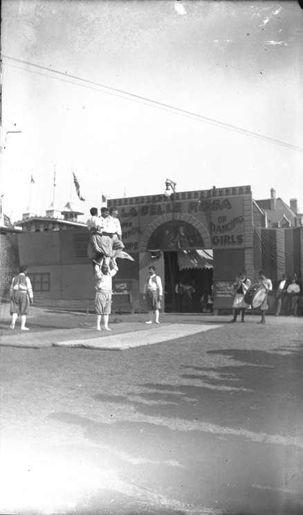 Favorite this☆ Acrobats perform at Elks carnival Description: Three acrobats are held up by strong man at the Elks carnival on June 13, 1893. Recorded in glass negative ledger: "D/Organizations-Elks, Benevolent & protective order of, carnival, June 13th, 1893." Details Resource ID: EB02d403 Subject: Elks (Fraternal order) Carnivals--Michigan--Detroit Strong men--Michigan--Detroit Acrobats--Michigan--Detroit Glass negatives Date Issued: 1893-06-13 Format: 1 negative : glass ; 5 x 3 in. Member of: Burton Historical Collection Negative Number: BHC glass neg. no. 744 Rights: Physical rights are retained by DPL. Copyright is retained in accordance with U.S. copyright laws.