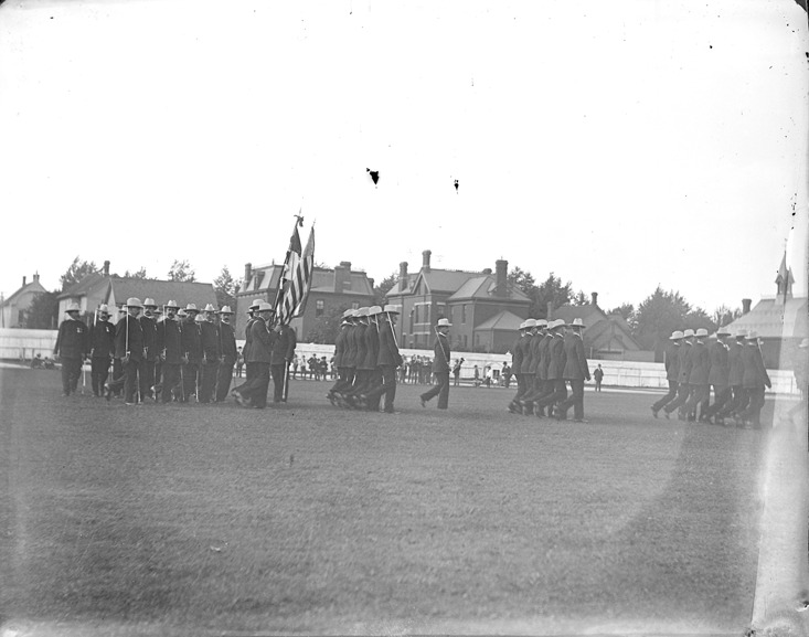 Favorite this☆ Knights Templar march in formation Description: Group of Knights Templar in uniform, carrying swords, march in formation on field. Recorded in glass negative ledger: "LD/Organizations-Freemasons-Knights Templar." Details Resource ID: EB02d431 Subject: Knights Templar (Masonic order) Freemasons--Michigan--Detroit Glass negatives Date Issued: Unknown year Format: 1 negative : glass ; 3.75 x 5 in. Member of: Burton Historical Collection Negative Number: BHC glass neg. no. 778 Rights: Physical rights are retained by DPL. Copyright is retained in accordance with U.S. copyright laws.