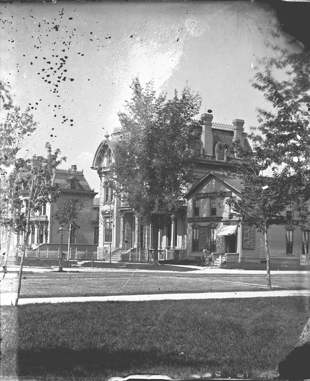 Gothic revival houses on Woodward and Adams Description: Two Gothic revival style houses next to an ice cream parlor on Woodward and Adams. Recorded in glass negative ledger: "D/Streets-Woodward & Adams." Details Resource ID: EB02d455 Subject: Woodward Avenue (Mich.) Streets--Michigan--Detroit Gothic revival (Architecture)--Michigan--Detroit Ice cream parlors--Michigan--Detroit Glass negatives Date Issued: Unknown year Format: 1 negative : glass ; 5 x 4 in. Member of: Burton Historical Collection Negative Number: BHC glass neg. no. 809 Rights: Physical rights are retained by DPL. Copyright is retained in accordance with U.S. copyright laws.