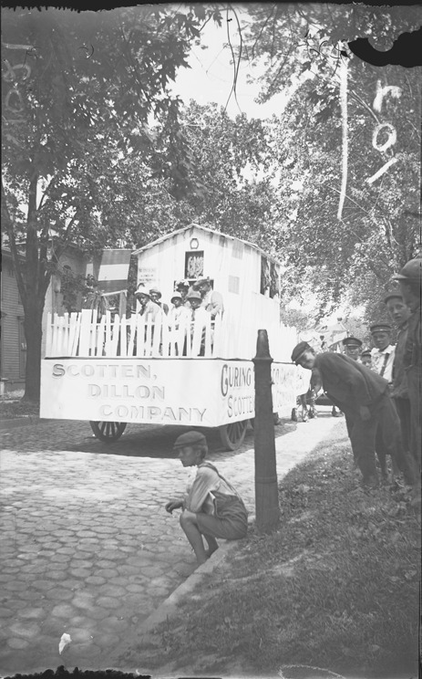 Favorite this☆ Scotten, Dillon Co. parade float Description: Six people sit on float with tobacco drying shack surrounded by picket fence, representing Scotten, Dillon Co., participating in Detroit's bicentennial celebration. Recorded in glass negative ledger: "D/Anniversaries-Bicentenary, 1901." Details Resource ID: EB02d617 Subject: Parades--Michigan--Detroit Detroit (Mich.)--Centennial celebrations, etc. Parade floats--Michigan--Detroit Tobacco industry--Michigan--Detroit Glass negatives Date Issued: 1901 Format: 1 negative : glass ; 5 x 3 in. Member of: Burton Historical Collection Negative Number: BHC glass neg. no. 1021 Rights: Physical rights are retained by DPL. Copyright is retained in accordance with U.S. copyright laws.