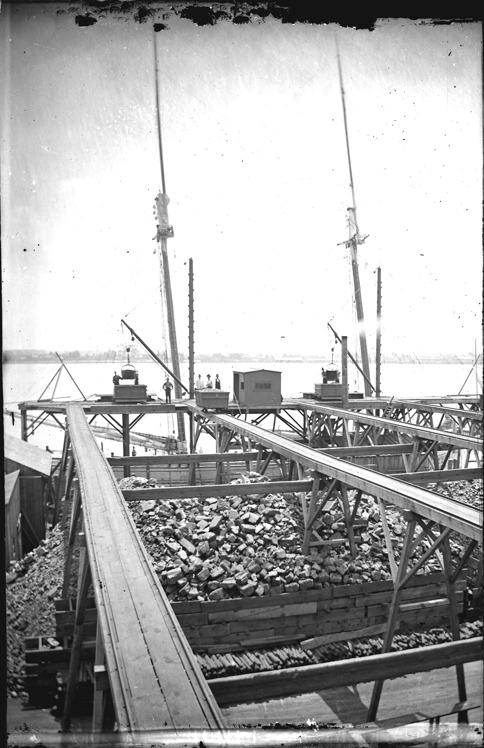 Favorite this☆ Men load coal on docks Description: Men at docks loading coal into cars, with long platforms running to dock over piles of bricks or coal, with the Detroit River in background. Recorded in glass negative ledger: "LD/Industry & business houses-Pittmans & Dean." Details Resource ID: EB02d658 Subject: Coal trade--Michigan--Detroit Commercial buildings--Michigan--Detroit Docks--Michigan--Detroit Detroit River (Mich. and Ont.) Glass negatives Date Issued: Unknown year Format: 1 negative : glass ; 5 x 3.25 in. Member of: Burton Historical Collection Negative Number: BHC glass neg. no. 1106 Rights: Physical rights are retained by DPL. Copyright is retained in accordance with U.S. copyright laws.