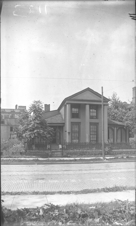 Favorite this☆ Greek revival house Description: Front view of Greek Revival style house, with wrought iron fences and a view of the street. Recorded in glass negative ledger: "LD/Historic houses." Details Resource ID: EB02d675 Subject: Dwellings--Michigan--Detroit Greek revival (Architecture)--Michigan--Detroit Streets--Michigan--Detroit Fences--Michigan--Detroit Glass negatives Date Issued: Unknown year Format: 1 negative : glass ; 5 x 3 in. Member of: Burton Historical Collection Negative Number: BHC glass neg. no. 1123 Rights: Physical rights are retained by DPL. Copyright is retained in accordance with U.S. copyright laws.