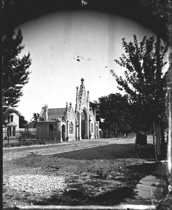 Favorite this☆ Entrance to Elmwood Cemetery Description: View of arched, stone entrance to Elmwood Cemetery, designed in the Gothic revival style. Recorded in glass negative ledger: "LD/Cemeteries-Elmwood." Details Resource ID: EB02d753 Subject: Elmwood Cemetery (Detroit, Mich.) Gateways--Michigan--Detroit Glass negatives Date Issued: Unknown year Format: 1 negative : glass ; 4.75 x 4 in. Member of: Burton Historical Collection Negative Number: BHC glass neg. no. 1201 Rights: Physical rights are retained by DPL. Copyright is retained in accordance with U.S. copyright laws.