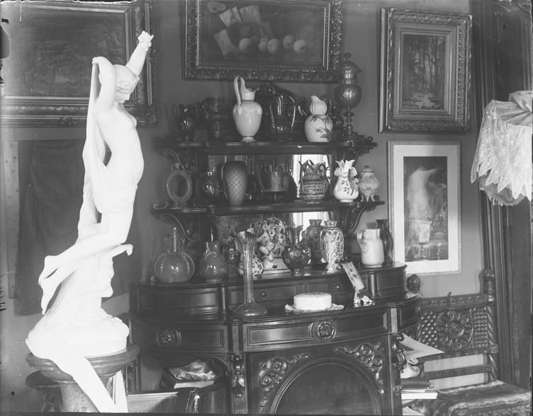 Favorite this☆ Frederick Stearns residence Description: View of an art room with vases, a sculpture and paintings on the wall in the home of Frederick Stearns in Detroit, Michigan. Recorded in glass negative ledger: "D/Historic houses-Stearns, Frederick." Details Resource ID: EB02d873 Subject: Rooms Vases--Michigan--Detroit Sculpture--Michigan--Detroit Painting--Michigan--Detroit Stearns, Frederick, 1831-1907--Homes and haunts--Michigan--Detroit Glass negatives Date Issued: Unknown year Format: 1 negative : glass ; 4 x 5 in. Member of: Burton Historical Collection Negative Number: BHC glass neg. no. 1334 Rights: Physical rights are retained by DPL. Copyright is retained in accordance with U.S. copyright laws.