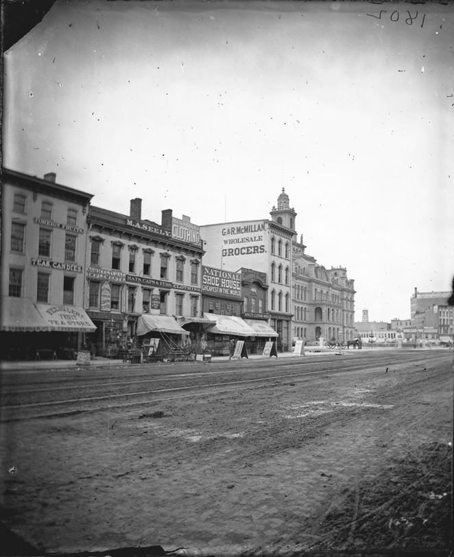 Favorite this☆ Stores on Woodward Avenue Description: Stores located on unpaved Woodward Avenue include G. & R. McMillan wholesale grocers, National Shoe House "Cheapest in the world" and Beedzlers fruit and tea store. City Hall can also be seen. Recorded in glass negative ledger: "D/Streets-Woodward." Details Resource ID: EB02d973 Subject: Commercial buildings--Michigan--Detroit Grocery trade--Michigan--Detroit Shoe stores--Michigan--Detroit City halls--Michigan--Detroit Woodward Avenue (Mich.) Streets--Michigan--Detroit Glass negatives Date Issued: Unknown year Format: 1 negative : glass ; 4.5 x 5.5 in. Member of: Burton Historical Collection Negative Number: BHC glass neg. no. 1458 Rights: Physical rights are retained by DPL. Copyright is retained in accordance with U.S. copyright laws.