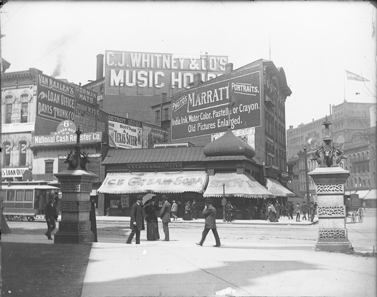 Favorite this☆ Sanders Pavilion on Michigan Avenue Description: View of Sanders Pavilion and Van Baalen's Loan Office on Michigan Avenue, with other businesses and a view of the street. Recorded in glass negative ledger: "D/Streets-Woodward & Michigan." Details Resource ID: EB02e001 Subject: Ice cream parlors--Michigan--Detroit Streets--Michigan--Detroit Savings and loan associations--Michigan--Detroit Glass negatives Date Issued: Unknown year Format: 1 negative : glass ; 4 x 5 in. Member of: Burton Historical Collection Negative Number: BHC glass neg. no. 1487 Rights: Physical rights are retained by DPL. Copyright is retained in accordance with U.S. copyright laws.