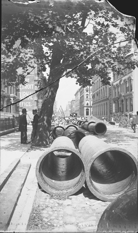 Favorite this☆ Sewer pipes lined up on Congress Street Description: View down a cobblestone street with large sewer pipes lined end-to-end, with businesses and trees in background. Glass negative is broken and cracked across top. Recorded in glass negative ledger: "LD/Streets-Congress." Details Resource ID: EB02e027 Subject: Streets--Michigan--Detroit Sewer-pipe--Installation Commercial buildings--Michigan--Detroit Glass negatives Date Issued: Unknown year Format: 1 negative : glass ; 5 x 3 in. Member of: Burton Historical Collection Negative Number: BHC glass neg. no. 1516 Rights: Physical rights are retained by DPL. Copyright is retained in accordance with U.S. copyright laws.