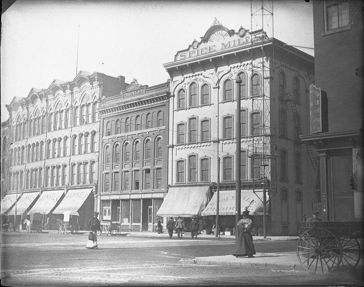 Favorite this☆ Eagle Spice Mill on Randolph Description: View of the Eagle Spice Mill and other businesses at Palmer Block on Randolph. Recorded in glass negative ledger: "D/Streets-Randolph." Details Resource ID: EB02e068 Subject: Spice trade--Michigan--Detroit Mills and mill-work--Michigan--Detroit Commercial buildings--Michigan--Detroit Glass negatives Date Issued: Unknown year Format: 1 transparency : glass ; 4 x 5 in. Member of: Burton Historical Collection Negative Number: BHC glass neg. no. 1533 Rights: Physical rights are retained by DPL. Copyright is retained in accordance with U.S. copyright laws.