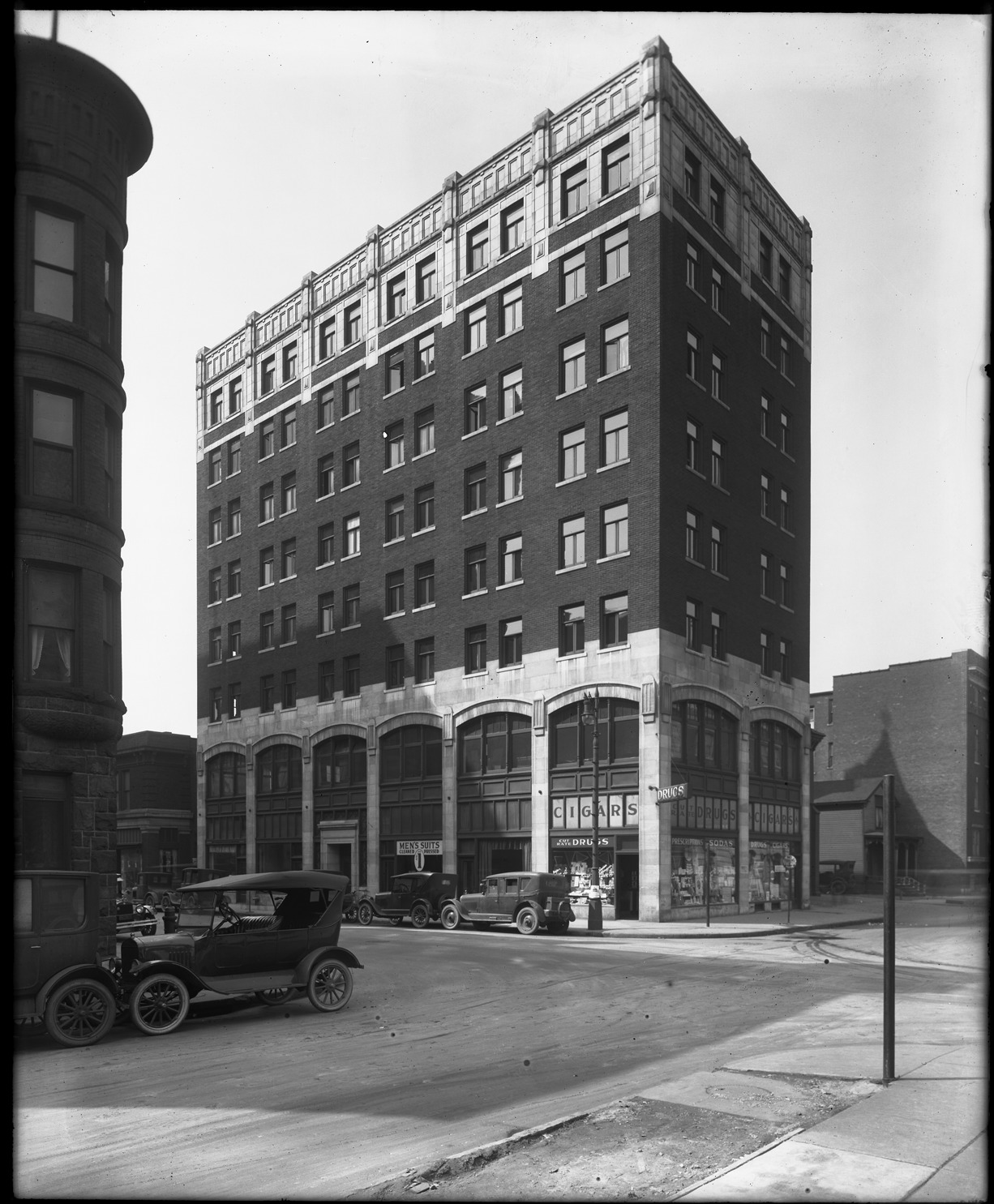 Favorite this☆ Butler Building on Griswold Description: Businesses including a dry cleaners and drug store in Butler Building on Griswold, with automobiles parked in street. Recorded in glass negative ledger: "D/Industries & business houses-Wormer & Moore." Details Resource ID: EB02e080 Subject: Commercial buildings--Michigan--Detroit Dry cleaning industry--Michigan--Detroit Drugstores--Michigan--Detroit Glass negatives Date Issued: Unknown year Format: 1 negative : glass ; 10 x 8.25 in. Member of: Burton Historical Collection Negative Number: BHC glass neg. no. 1545 Rights: Physical rights are retained by DPL. Copyright is retained in accordance with U.S. copyright laws.