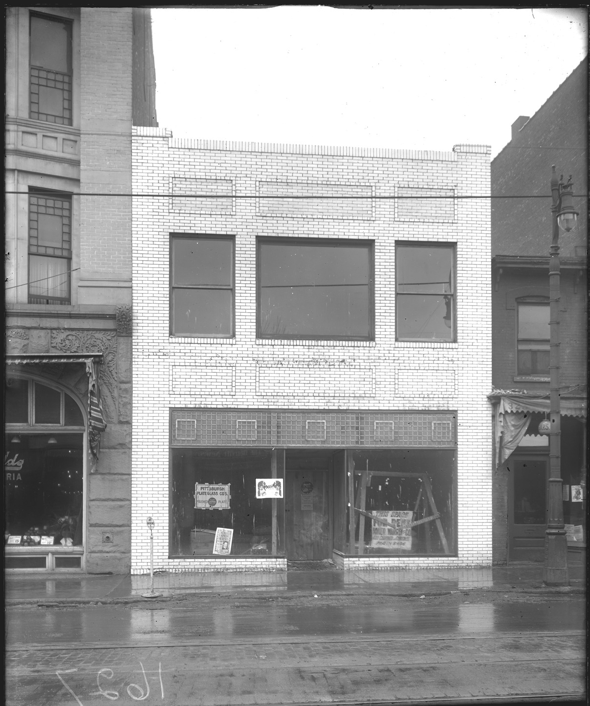 Favorite this☆ Pittsburgh Plate Glass Co.'s Polished Plate sign Description: Vacant building with sign in window for Pittsburgh Plate Glass Co.'s Polished Plate, also a poster for the Cincinnati Symphony Orchestra, street in front is wet. Recorded in glass negative ledger: "D/Streets-Woodward." Details Resource ID: EB02e152 Subject: Pittsburgh Plate Glass Company Signs and signboards--Michigan--Detroit Abandoned buildings--Michigan--Detroit Glass negatives Date Issued: Unknown year Format: 1 negative : glass ; 10 x 8 in. Member of: Burton Historical Collection Negative Number: BHC glass neg. no. 1628 Rights: Physical rights are retained by DPL. Copyright is retained in accordance with U.S. copyright laws.