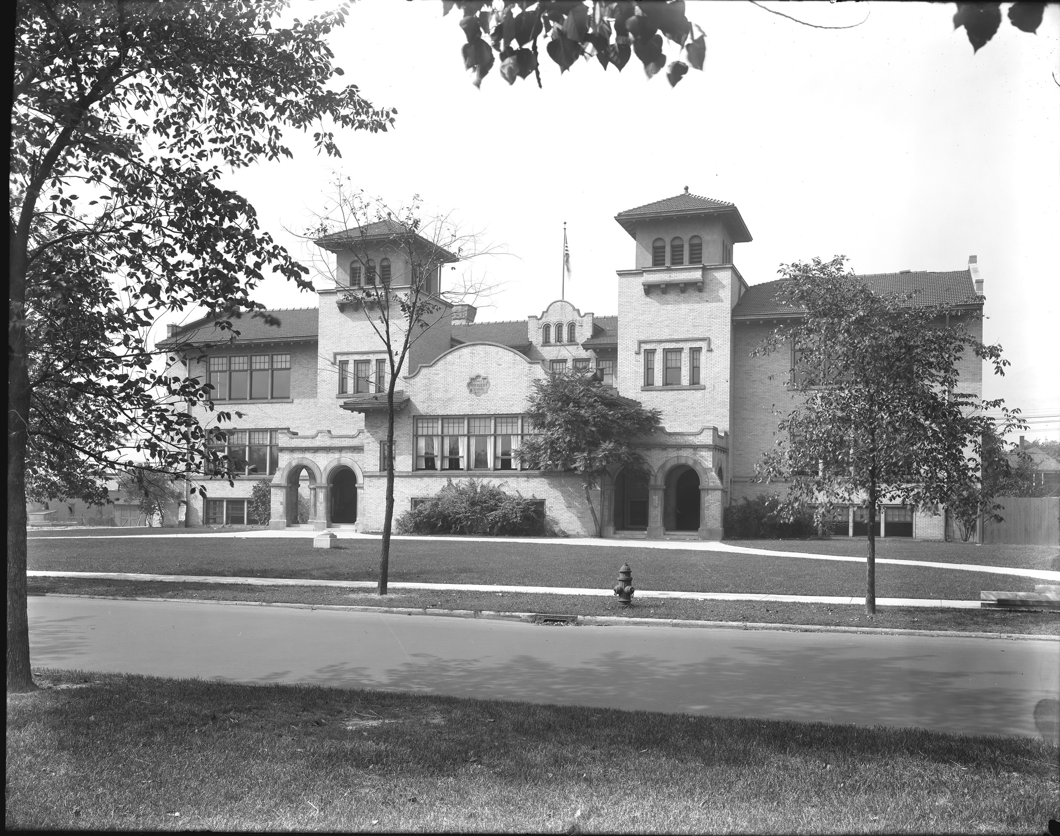 Fanny E. Wingert School, built in 1907 in a Spanish Eclectic style. Recorded in glass negative ledger: "LD/Schools-Wingert."