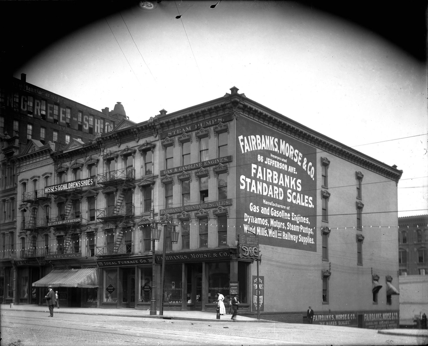 Favorite this☆ Fairbanks, Morse & Co. on W. Jefferson Avenue Description: Buildings located on the west side of Jefferson at Wayne include Fairbanks, Morse & Co., manufactures of gas and gasoline engines, dynamos, motors, B. Mark & Son, and Ideal Furnace Co. Recorded in glass negative ledger: "D/Streets-Jefferson, west." Details Resource ID: EB02e250 Subject: Fairbanks, Morse and Company Business establishments--Michigan--Detroit Glass negatives Date Issued: Unknown year Format: 1 negative : glass ; 8 x 10 in. Member of: Burton Historical Collection Negative Number: BHC glass neg. no. 1737 Rights: Physical rights are retained by DPL. Copyright is retained in accordance with U.S. copyright laws.