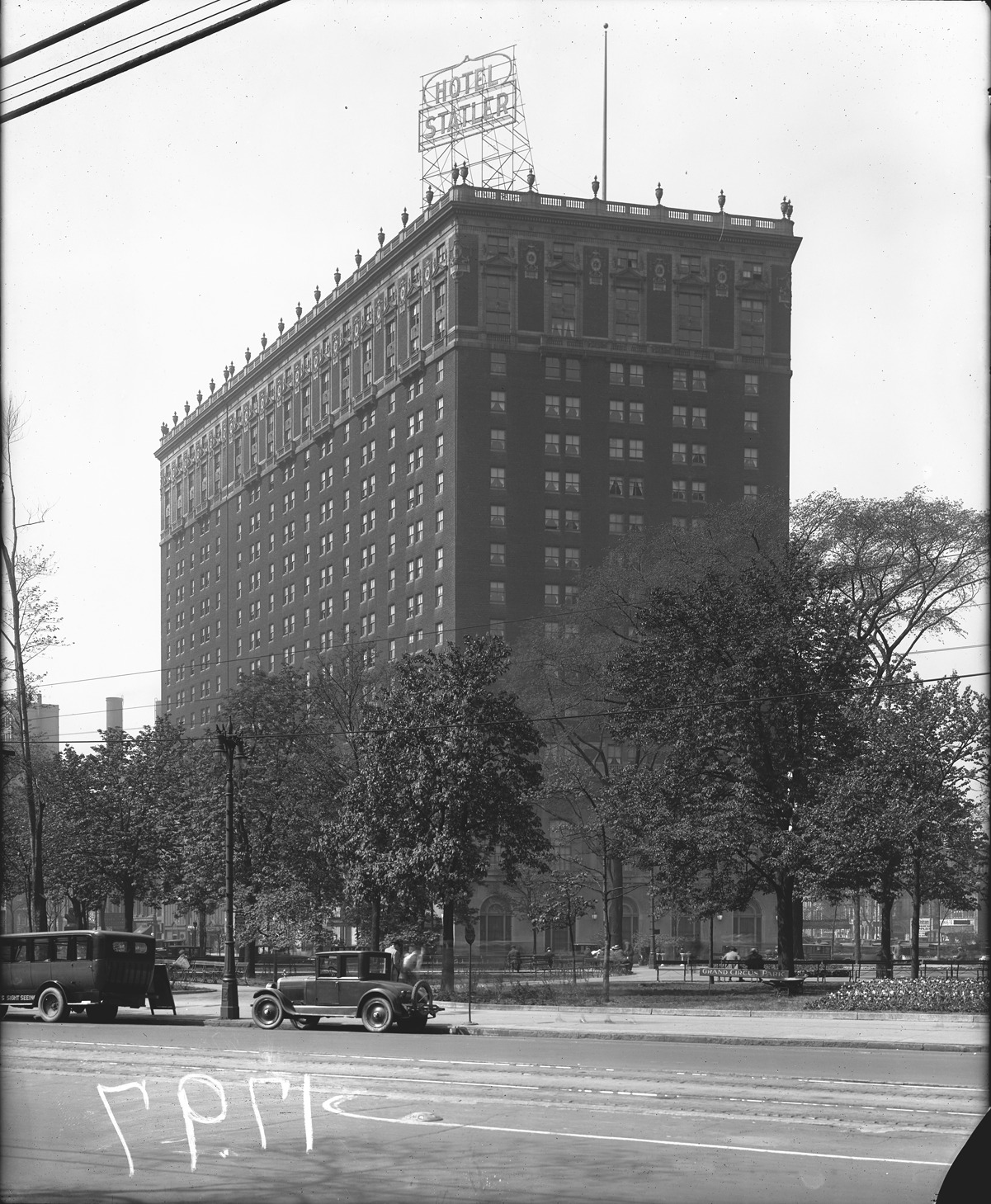 Favorite this☆ Hotel Statler Description: View of Hotel Statler from Woodward. Recorded in glass negative ledger: "D/Hotels-Statler." Broken corner on glass negative. Details Resource ID: EB02e308 Subject: Statler Hotel (Detroit, Mich.) Hotels--Michigan--Detroit Glass negatives Date Issued: Unknown year Format: 1 negative : glass ; 9.75 x 8 in. Member of: Burton Historical Collection Negative Number: BHC glass neg. no. 1797 Rights: Physical rights are retained by DPL. Copyright is retained in accordance with U.S. copyright laws.