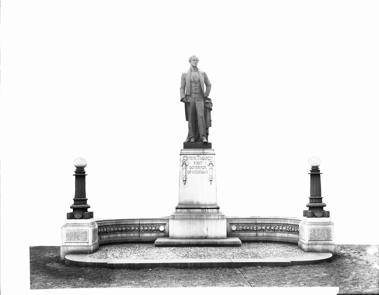 Favorite this☆ Stevens T. Mason statue in Capitol Park Description: Statue of first governor of Michigan Stevens T. Mason in Capitol Park, designed by Albert Weinert and installed in 1908. Image masked off with tape. Recorded in glass negative ledger: "D/Monuments-Mason, Stevens T." Details Resource ID: EB02e323 Subject: Mason, Stevens Thomson, 1811-1843--Statues--Michigan--Detroit Mason, Stevens Thomson, 1811-1843--Monuments--Michigan--Detroit Glass negatives Date Issued: Unknown year Format: 1 negative : glass ; 7.75 x 10 in. Member of: Burton Historical Collection Negative Number: BHC glass neg. no. 1825 Rights: Physical rights are retained by DPL. Copyright is retained in accordance with U.S. copyright laws.