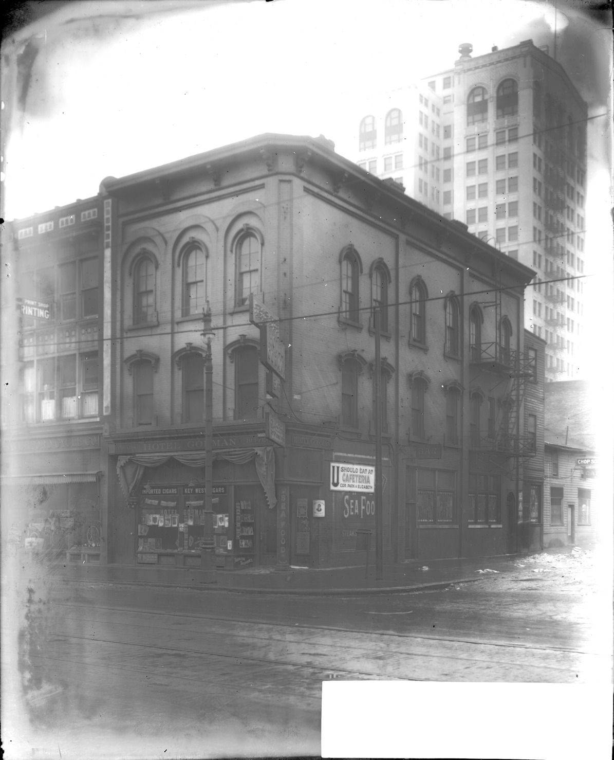 Favorite this☆ Hotel Gorman Description: View of Hotel Gorman at 291 Woodward Ave., label pasted on bottom, right-hand corner of negative. Recorded in glass negative ledger: "D/Hotels-Gorman." Details Resource ID: EB02e346 Subject: Hotels--Michigan--Detroit Glass negatives Date Issued: Unknown year Format: 1 negative : glass ; 10 x 8 in. Member of: Burton Historical Collection Negative Number: BHC glass neg. no. 1855 Rights: Physical rights are retained by DPL. Copyright is retained in accordance with U.S. copyright laws.