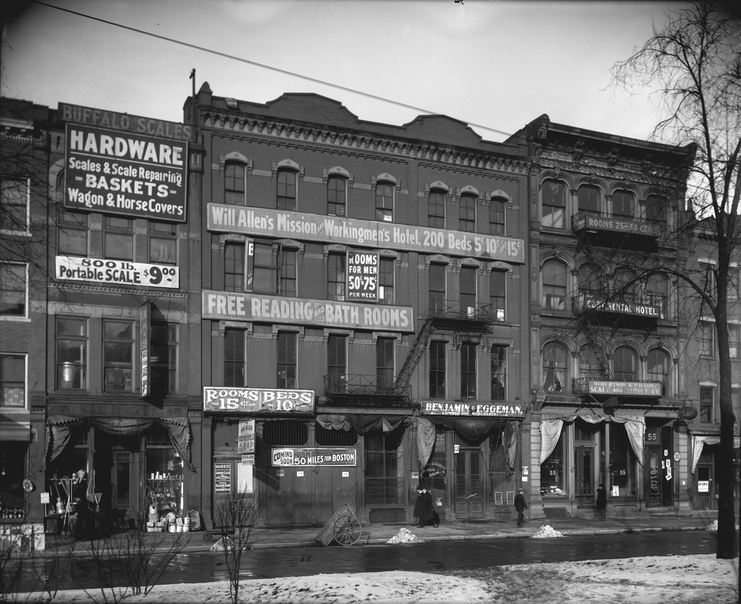 Will Allen's Mission and Workingmen's Hotel on Cadillac Square
