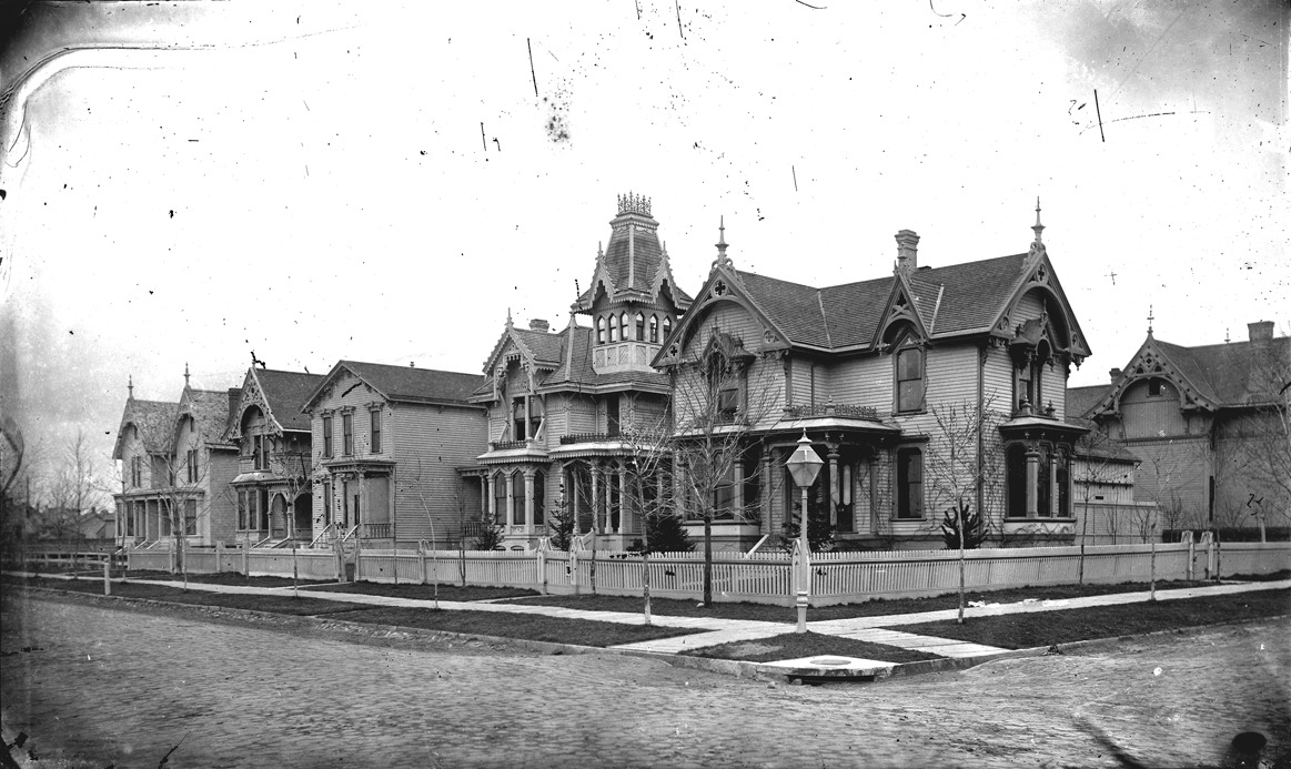 Favorite this☆ Examples of Victorian homes Description: Five Victorian homes in the Gothic revival style, one with a tower, most with elaborate vergeboards and other decorative features. Recorded in glass negative ledger: "LD/Historic houses." Details Resource ID: EB02e372 Subject: Gothic revival (Architecture)--Michigan--Detroit Architecture, Victorian--Michigan--Detroit Architecture--Details Dwellings--Michigan--Detroit Glass negatives Date Issued: Unknown year Format: 1 negative : glass ; 4.75 x 7.75 in. Member of: Burton Historical Collection Negative Number: BHC glass neg. no. 1885 Rights: Physical rights are retained by DPL. Copyright is retained in accordance with U.S. copyright laws.