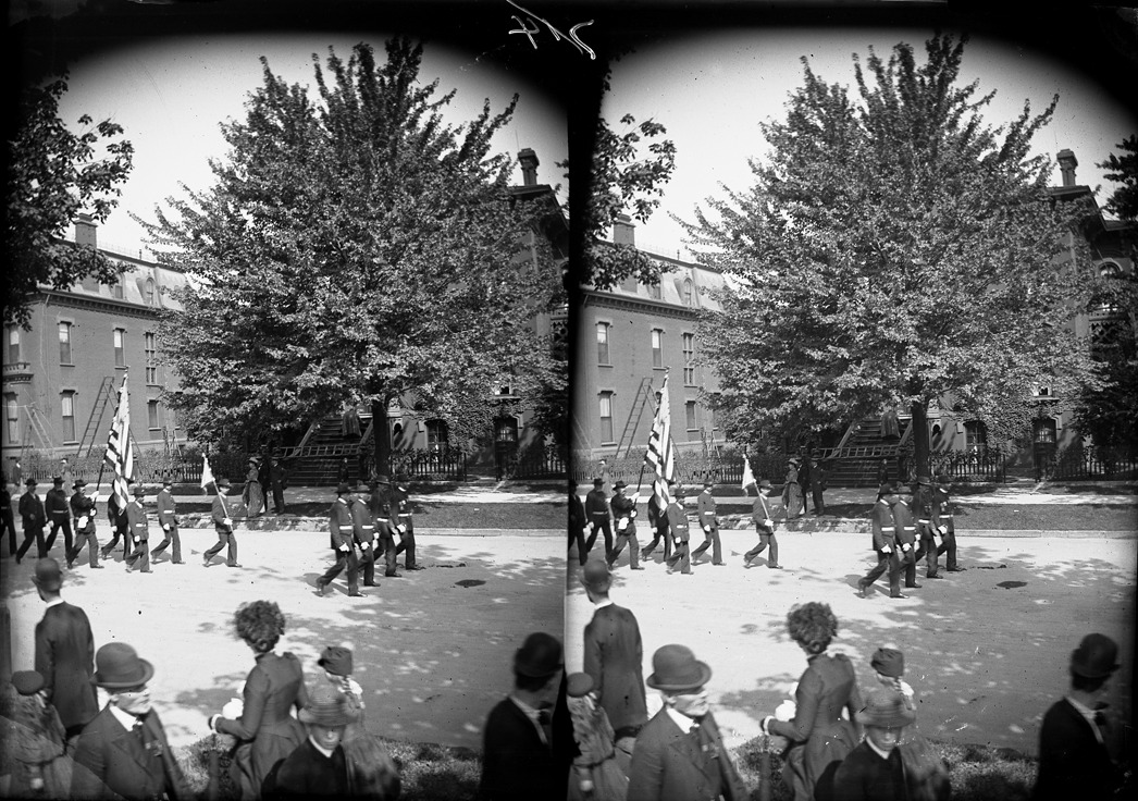 Favorite this☆ G.A.R. Convention parade Description: Stereoview of people watching soldiers parade during G. A. R. Convention. Recorded in glass negative ledger: "LD/Conventions-G.A.R.-25th nat'l. encampment, Detroit, 1891." Details Resource ID: EB02e373 Subject: Parades--Michigan--Detroit Grand Army of the Republic. National Encampment Stereoviews Glass negatives Date Issued: 1891 Format: 1 negative : glass ; 5 x 7 in. Member of: Burton Historical Collection Negative Number: BHC glass neg. no. 1886 Rights: Physical rights are retained by DPL. Copyright is retained in accordance with U.S. copyright laws.